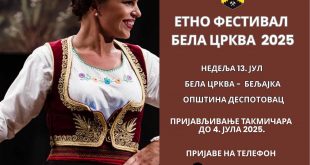 U cilju očuvanja narodne tradicije Opština Despotovac i ove godine organizuje Etno festival ,,Bela crkva“. Festival će se održati u nedelju, 13. jula 2025. godine, na prostoru pored Bele crkve u Beljajci. Celodnevno druženje u duhu narodne tradicije je izložbenog, takmičarskog i prodajnog karaktera. Pozivaju se svi zainteresovani pojedinci, udruženja …